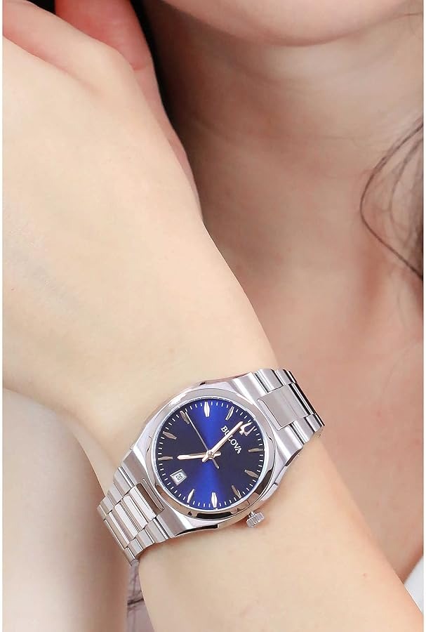 El Bulova 96M157 es un reloj femenino de estilo clásico y elegante, ideal para el uso diario o para ocasiones formales. Presenta una caja de acero inoxidable de tamaño equilibrado que se adapta cómodamente a la muñeca, combinada con una esfera azul de diseño limpio y sofisticado. Funciona con movimiento de cuarzo de alta precisión, ofreciendo confiabilidad y bajo mantenimiento. Su diseño atemporal lo convierte en una pieza versátil y fácil de combinar.Características