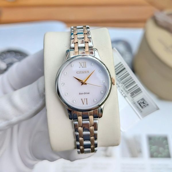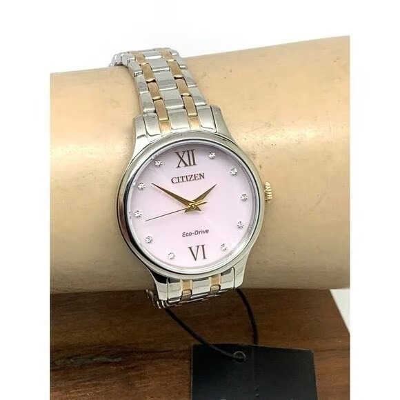 El Citizen EM0897-51X Eco-Drive es un reloj femenino elegante y versátil que combina diseño clásico con la tecnología ecológica por la que Citizen es mundialmente conocida. Este modelo destaca por su esfera rosa (pink dial) que transmite un toque delicado y femenino, ideal para quienes aprecian un estilo sofisticado pero accesible para el uso diario o eventos especiales. El diseño bicolor en acero inoxidable (plateado y dorado) realza su aspecto refinado y lo convierte en un accesorio que complementa múltiples estilos de vestimenta.