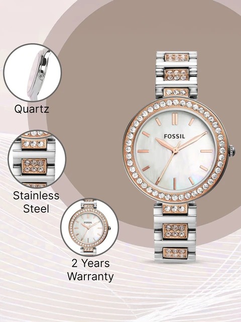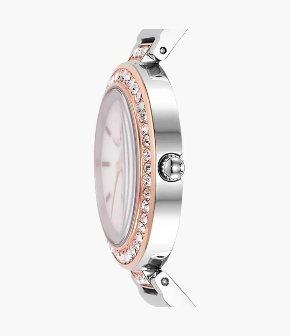 El Fossil BQW3337 de la línea Karli es un reloj femenino elegante y sofisticado, ideal para quienes buscan un accesorio delicado pero moderno. Su diseño en tonos bicolor (plateado y oro rosa) junto con su esfera de nácar le da un estilo refinado que combina perfectamente tanto con outfits casuales como formales. Es una pieza pensada para destacar sin ser exagerada, manteniendo la esencia clásica de Fossil.