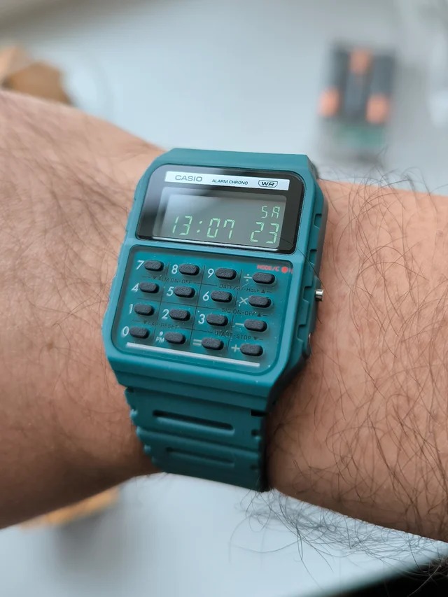 - Diseño retro: El CA-53WB-1B tiene un diseño clásico de los años 80, con una caja rectangular y una correa de resina. Su estética recuerda a los relojes calculadoras que Casio popularizó en esa época.