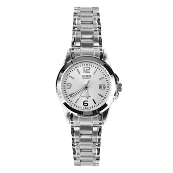 El Casio LTP‑1215A‑7A es un reloj analógico para mujer con un diseño elegante y sencillo. Tiene caja y correa de acero inoxidable, con acabado plateado pulido, y una esfera clara con marcadores sencillos. Es ideal para uso diario o como accesorio discreto pero sofisticado.