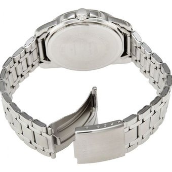 El Casio MTP-1314D-7A es un reloj analógico para hombre que pertenece a la línea Standard / Enticer. Tiene un diseño clásico con caja y correa de acero inoxidable con acabado plateado. La esfera es clara, con números arábigos grandes para facilitar la lectura, y una ventana de fecha situada a las 3 en punto. Es un modelo que combina estilo formal con uso diario, con un tamaño notable que le da presencia en la muñeca.
