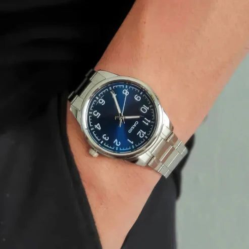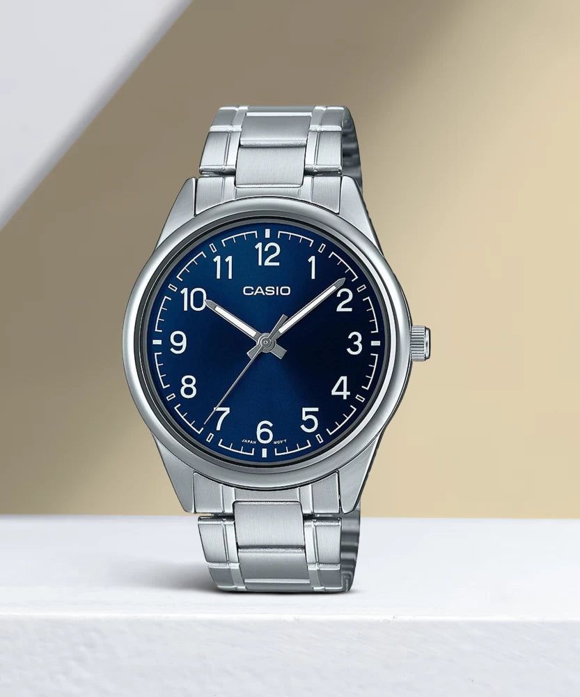 El Casio MTP-V005D-2B4 es un reloj analógico para hombre que combina un diseño clásico con funcionalidad práctica, ideal para el uso diario.