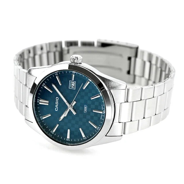 El CASIO MTP-VD03D-2A es un reloj masculino que destaca por su diseño sofisticado y elegante. Este modelo presenta una atractiva esfera azul oscuro, complementada con números romanos y marcadores plateados que le brindan un aspecto refinado y clásico. La caja y la correa están fabricadas en acero inoxidable, lo que asegura durabilidad y resistencia, ideal para el uso diario o para ocasiones más formales. Además, incluye una ventana de fecha a las 3 en punto, agregando una funcionalidad práctica a su diseño. Su resistencia al agua de hasta 50 metros permite un uso sin preocupaciones en diversas actividades cotidianas. El MTP-VD03D-2A es perfecto para quienes buscan un reloj que combine funcionalidad y estilo con un toque moderno.
