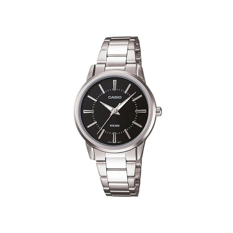 El Casio LTP-1303D-1A es un reloj femenino de diseño clásico, elegante y versátil, ideal para uso diario o para ocasiones formales. Está construido con caja y brazalete de acero inoxidable con acabado plateado, y cuenta con una esfera negra profunda que ofrece contraste visual y facilita la lectura del tiempo. Su movimiento de cuarzo proporciona precisión confiable, mientras que la ventana de fecha añade una función útil y práctica. El tamaño compacto del reloj y su perfil ligero lo hacen cómodo para muñecas pequeñas o medianas.