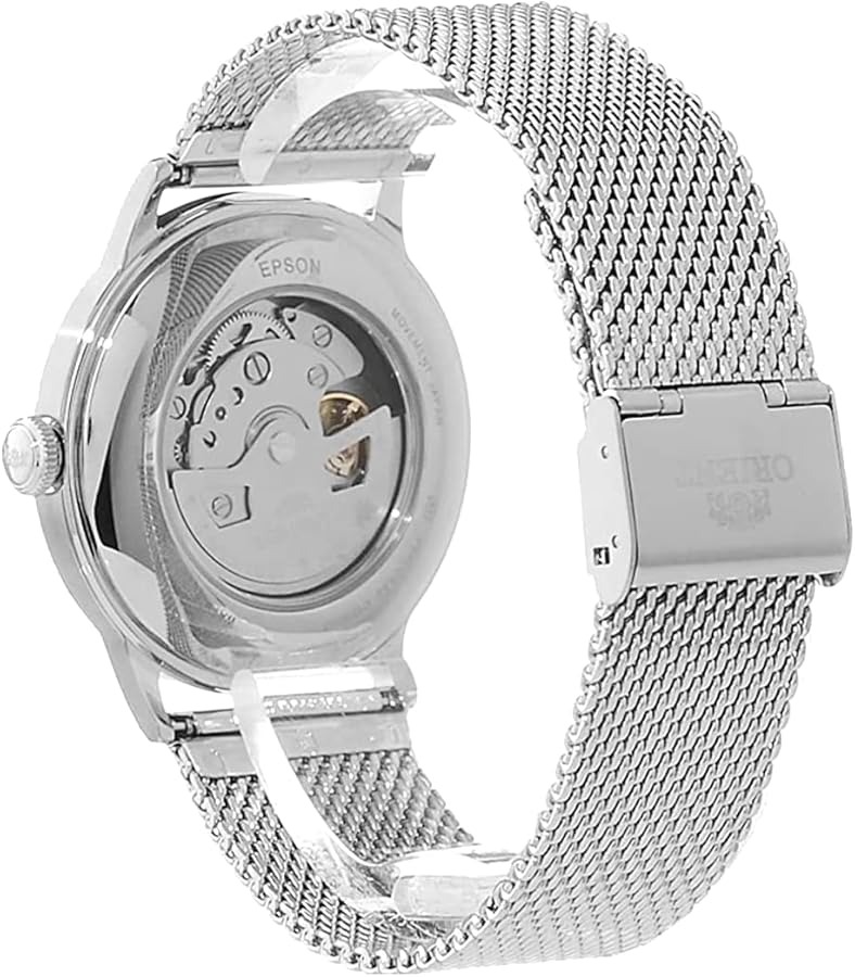 Reloj automático elegante para hombre Orient RA-AC0020G30B de la colección Bambino Version 6 con diseño clásico atemporal, caja de acero inoxidable plateado de 40.5 mm con esfera color champagne sunburst con acabado delicado, movimiento automático Orient calibre F6724 con cuerda manual y parada de segundero (hacking) y reserva de marcha de aproximadamente 40 horas, cristal mineral abovedado resistente a rayaduras, visualización de fecha a las 3 h para mayor funcionalidad, brazalete de acero inoxidable combinado con cierre desplegable seguro, resistente al agua hasta 30 m / 3 ATM adecuado para uso diario y salpicaduras ligeras, combinación de estilo clásico elegante y precisión mecánica japonesa ideal para uso formal o casual.