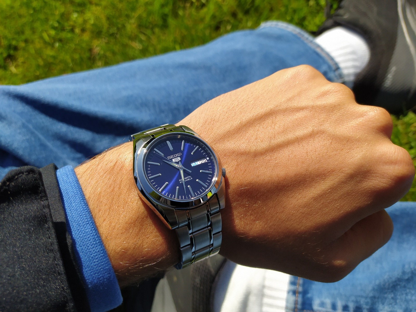 Seiko SNKL43K1, Serie Seiko 5, Movimiento automático calibre 7S26 con 21 joyas, Reserva de marcha aprox. 40 h, Funciones: hora, minuto, segundo, día y fecha, Caja de acero inoxidable plateado, Diámetro de caja aprox. 38 mm, Grosor aprox. 11 mm, Cristal Hardlex resistente a rayaduras, Esfera negra con índices y manecillas luminosas, Brazalete de acero inoxidable con cierre desplegable, Fondo de caja transparente (see-through), Corona push/pull, Resistencia al agua 30 m / 3 ATM (salpicaduras), Estilo casual y elegante masculino.